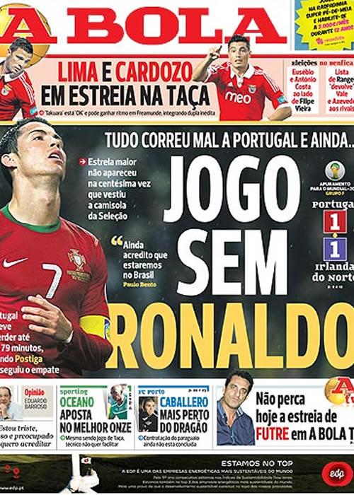 "В играта на Португалия нищо не се получи. Играхме без Роналдо", още по-остро пише "А Бола". "Най-голямата звезда не се появи на сцената", продължава изданието. "Нямаше повод за радост в юбилейната среща. (…) Роналдо беше лицето на много слаб мач", отбеляза "Диарио де Нотисиас".