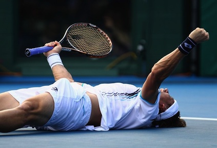 Испанският състезател спечели подаването на Рошу още в първия гейм на втората част, но след това се стигна до 2:2. Защитаващият титлата си от миналата година Ферер отново постигна пробив и поведе с 4:3, за да триумфира в мача след общо 94 минути игра.