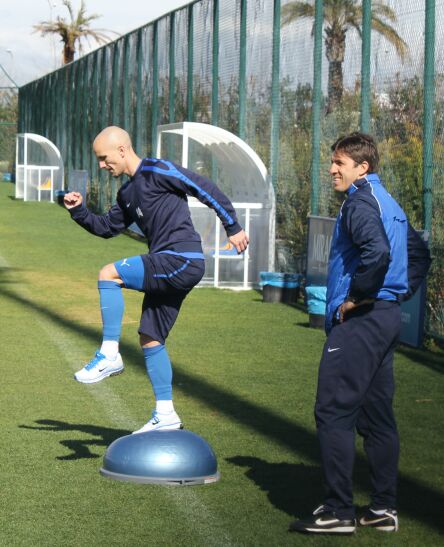 Неигралите вчера Йовов, Тасевски, Рамос и Калво, който изкара едно полувреме с Краснодар, правиха упражнения за баланс, след което и такива с топка.