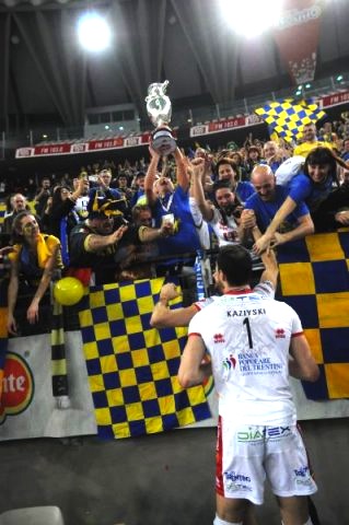 Звездата на българския волейбол Матей Казийски и съотборниците му от Итас Диатек (Тренто) ще играят още два пъти срещу силния тим на Лубе Банка Марке (Мачерата) в следващите 10 дена, след като снощи надделяха изключително драматично с 3:2 във финала за Купата на Италия.