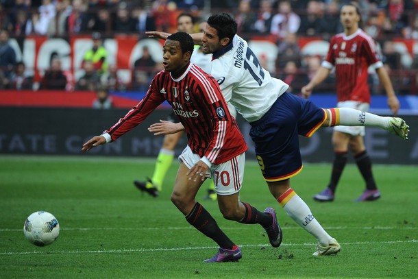 Шампионът на Италия Милан победи с 2:0 Лече в мач от 27-ия кръг на Серия "А" на "Джузепе Меаца" и дръпна в класирането на своя конкурент Ювентус с 4 точки. Головете за "росонерите" отбелязаха Антонио Ночерино (7) и Златан Ибрахимович (64), а Валери Божинов игра пълни 90 минути за гостите.