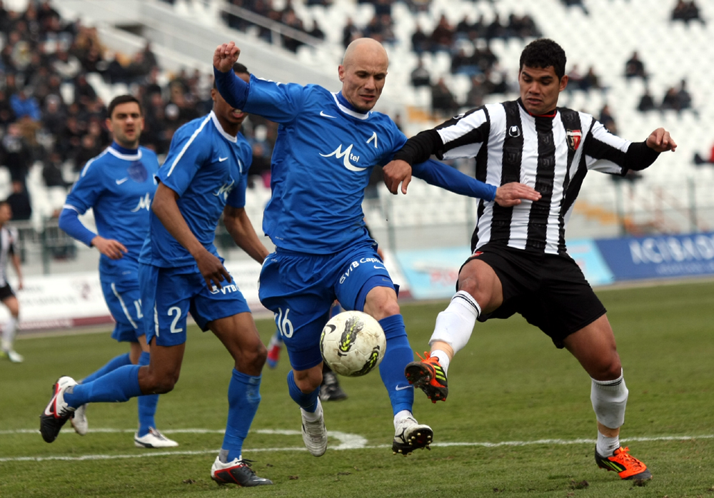 Домакините имаха отлична възможност да открият още в първата минута, но Йордан Милиев изчисти в корнер при центриране на Лазаров. Последваха добри възможности за Тони Калво и Дарко Тасевски, които бяха пропуснати. В 21-ата минута "сините" поведоха след гол на Тони Калво, който бе точен след подаване на Кристовао Рамос отдясно. Юношата на Барселона засече центрирането на бившия играч на Анортозис на два метра от голлинията и прати топката в мрежата на Иван Караджов.