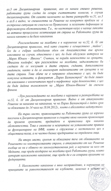 Веднага след загубата в Дупница снощи (0:3) босът на Пирин обяви, че тимът прекратява участието си в първенството, ако Националната Волейболна Лига не променят решението си за наказване с отнемане на домакинството на Пирин. "В момента подготвяме жалба, която ще изпратим до федерацията и решението ни да не участваме в третия мач, ако той не в нашата зала" заяви ексклузивно за BGvolleyball.com Костадин Калоянов. "Нека Данчо Лазаров си намери друг отбор и той да излезе срещу Марек".