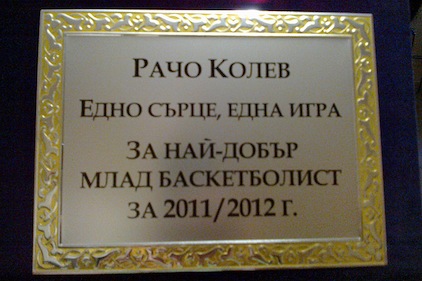 Награда на името на преждевременно отишлия си наш колега – спортният журналист Рачо Колев – ще връчи баскетболната медийна гилдия на най-добрия млад баскетболист в България. Идеята за приза се роди спонтанно, като начин да бъде почетено името на Рачо Колев, който отдаде краткия си живот изцяло на баскетбола, и специално на изгряващите таланти в този спорт. Рачо ден и нощ пишеше за играта с оранжевата топка, и не пропускаше да похвали, или критикува, когато е нужно, младите надежди на родния баскетбол.