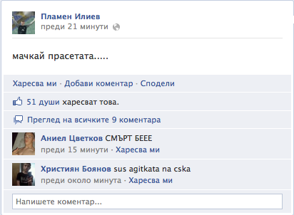 Новоизпеченият капитан на Левски Пламен Илиев влезе в употреба за пропагандата на феновете на "сините" преди вечното дерби с ЦСКА. Неизвестен фен на 26-кратните шампиони изготви специален профил на стража на любимия си отбор в в социалната мрежа "Фейсбук", чрез който надъхва съмишлениците си да подкрепят "сините" в сблъсъка с вечния съперник. "Левски или смърт!" призовава Сектор "Б" от фотоса, който фенът е качил на стената на профила на Илиев. Той е публикувал и статус с призива "Мачкай прасетата…." преди дербито.