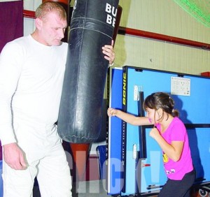 Специализираният в борбата Толеа Чиумак е истински великан, а кантарът показва 116 килограма, когато той се качи на него.