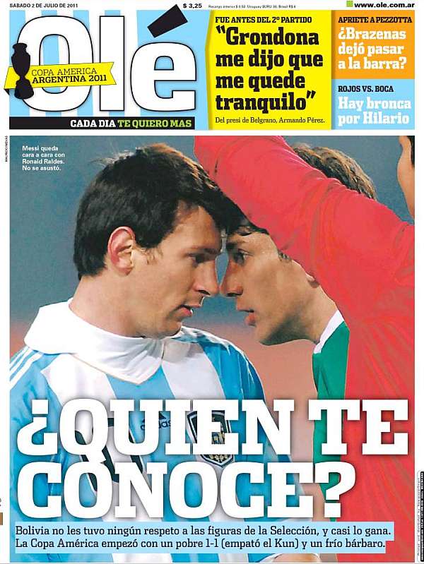Неубедителното началото на Копа Америка за домакина Аржентина намери широк отзвук в пресата на южноамериканската страна. Популярният вестник "Оле" е сред най-критичните към играчите на "албиселесте" и конкретно към Лео. "Кой те познава?" е голямото заглавие на "Оле" със снимка на 24-годишния супернападател на Барселона с намек, че сравняваният с Марадона футболист е играл високомерно.