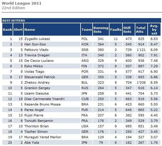Титулярният плеймейкър на националния отбор на България Андрей Жеков остана на 9-та позиция в класацията за най-добрите разпределители в Световната лига след края на груповата фаза.