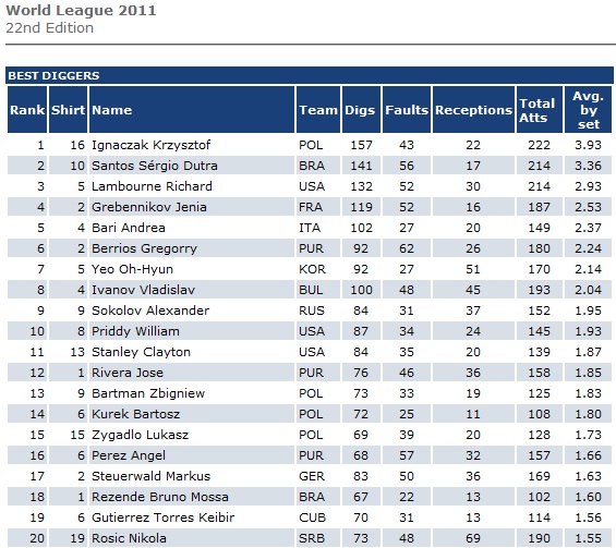 Либерото на националния отбор на България по волейбол Владислав Иванов - Лимона зае 8-то място в крайното класиране за най-добър защитник в Световната лига след края на груповата фаза.