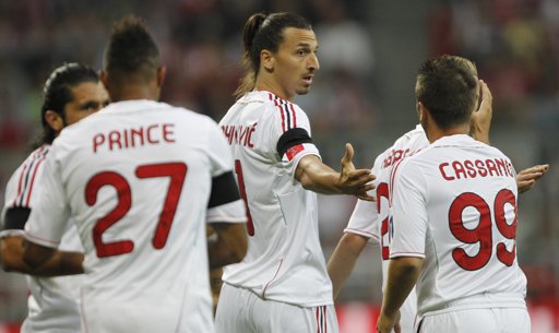 Милан (4-3-1-2): Кристиан Абиати; Иняцио Абате (62-Лука Антонини), Алесандро Неста (62-Тиаго Силва), Даниеле Бонера, Тайе Тайво (85-Масимо Одо); Дженаро Гатузо (46-Масимо Амброзини), Марк Ван Бомел, Урби Емануелсон (88-Алешандре Пато); Кевин-Принс Боатенг (62-Матия Валоти), Златан Ибрахимович (46-Алберто Палоски), Антонио Касано (62-Робиньо)