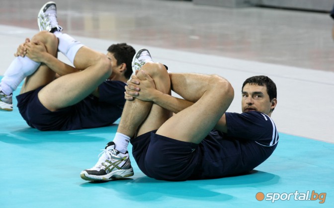 В заниманието не участва звездата Матей Казийски, който се подготвя по индивидуална програма, а Тодор Скримов, който направи дебют за държавния тим при победата над Сърбия с 3:1 в София изгледа по-голямата част от тренировката от страни заради получена рана.