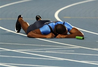 Щафетата на САЩ претърпя пълен провал и не успя да завърши, след като Дарвис Патън на трети пост падна.