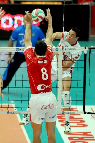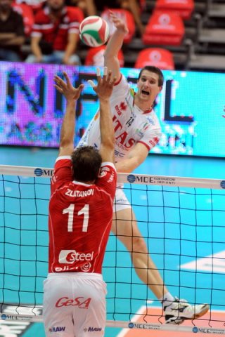 . Възпитаниците на наставника Радостин Стойчев победиха много трудно като гости Копра Елиор (Пиаченца), където играят капитанът на България Владимир Николов, националният разпределител Андрей Жеков, националът Николай Пенчев и българинът с италиански паспорт Христо Златанов, с