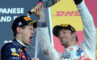 Себастиан Фетел триумфира за втора поредна година с титлата във Формула 1, след като завърши трети в Гран при на Япония рано тази сутрин и така спечели нужната му точка. Германецът счупи още един рекорд и се превърна в най-младия двукратен шампион в историята. Победата на "Сузука" грабна Дженсън Бътън (Макларън-Мерцедес), който успя да победи Фетел при влизанията в бокса, а втори финишира Фернандо Алонсо с Ферари. Бътън бе много бърз днес и не остави никакви шансове на Фетел и Алонсо. Ред Бул не успяха да спечелят в Япония титлата при конструкторите официално, но това ще стане най-веротяно след седмица в Корея.