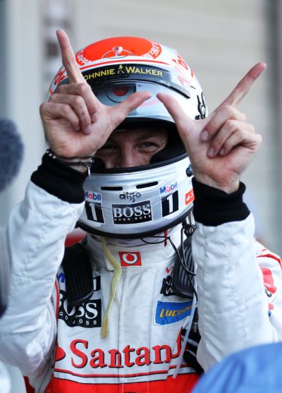От минаването през тревата Бътън изгуби втората позиция от съотборника си Люис Хамилтън. Малко по-късно лошият късмет отново го сполетя и спукана дясна задна гума го принуди да влезе първи в бокса в седмата обиколка. Така Люис се свлече на четвърто място зад Фернандо Алонсо. Пилотът на Ферари преди това вече се бе справил със съотборника си Фелипе Маса.