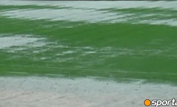 Днес вали далеч по-слабо, но теренът е подгизнал и въпреки усилията на домакините да го отводнят, той не става за игра. Поради тази причина почти сигурно в 17.00 часа дежурният делегат ще вземе решение за повторно отлагане на срещата.