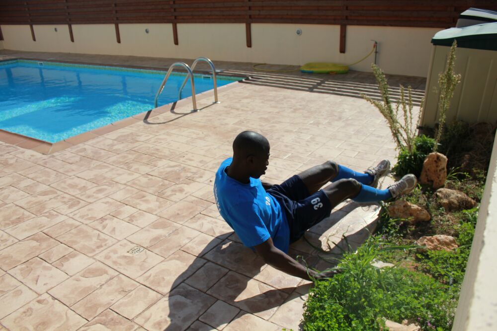 При всяка грешка на един от тримата, сгрешилият трябваше да прави лицеви опори и изненадващо Гара и Матондо напомпаха по 50 лицеви опори. В един момент Гара ритна високо топката, която прескочи терена и влезе в двора на къщата, която е зад помощното игрище.