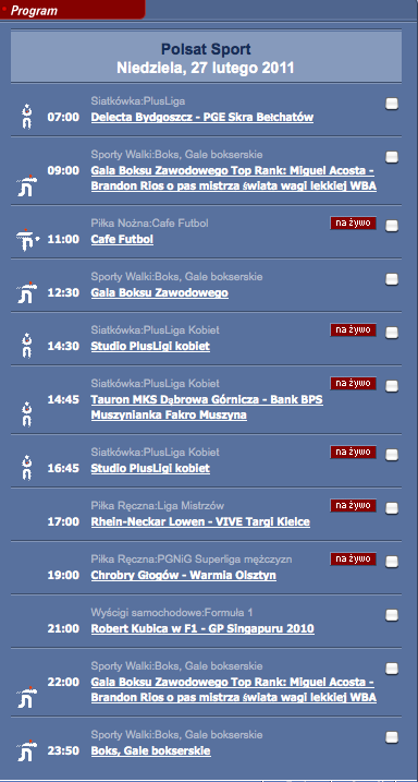 По Polsat Sport, пък в този час ще се излъчи пряко мача от женското волейболно първенство Таурон МКС (Даброва Горница) - Банк БПС Мужинянка Факро (Мужина) и хандбалната среща за мъже от Шампионската лига Райн-Некер (Льовен) - ВИВЕ Тарги (Киелце).