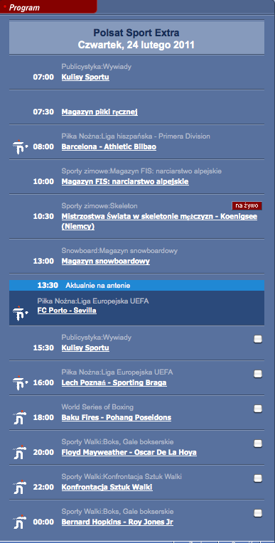 Според последните публикувани предварителни програми в сайта на Polsat на телевизиите Polsat Sport и на Polsat Sport Extra, в тях не е залегнало излъчване на мача ЗАКСА - ЦСКА. По същото време в неделя (27 февруари) от 16,00 часа по Polsat Sport Extra ще се излъчи повторение на футболния двубой от Лига Европа Лех (Познан) - Спортинг (Брага).