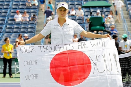 Непосредствено преди 1/4-финалния им мач в Индиън Уелс двете тенисистки разпънаха японското знаме в центъра на корта и помолиха за минута мълчание в памет за загиналите от кошмарното земетресения в Страната на изгряващото слънце, както и последвалото цунами и настоящата ядрена криза. На флага собственоръчно Вожняцки бе написала "Мислите ни са с вас".