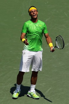 Надал нанесе първия удар в продължилия 3 часа и 21 минути мач, осъществявайки пробив за 2:1 в първия сет. Джокович имаше прекрасен шанс веднага да върне пробива, тъй като още в следващия сервис-гейм на Рафа се стигна до 15:40, а след това и до предимство за Новак, но 24-годишният испанец успя да удържи подаването си. В тези минути Надал бе по-стабилният играч на корта, докато Джокович често грешеше и допусна нов пробив, който отново бе затвърден от испанеца - 5:1 за Рафа. В този момент Джокович се събуди, спечели три поредни гейма, намали изоставането си на 4:5 и дори успя да притисне съперника си в десетия гейм, в който се стигна до 15:40 при сервис на Рафа. Все пак, Надал спечели подаването си, а с това и първия сет. Любопитното е, че със същия резултат той спечели и първата част в мача между двамата преди две седмици в Индиън Уелс.