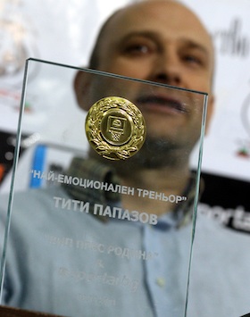 Баскетболен треньор номер 1 на България за 2009 година Константин Папазов - Тити днес получи поредна награда. Този път наставникът на Левски грабна приза на ВИП Прес "Родина" и Sportal.bg за най-емоционален треньор.