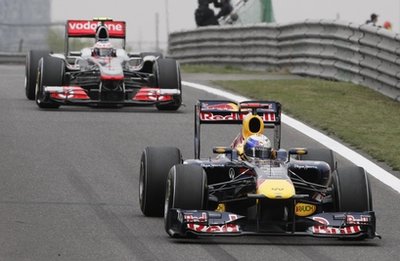 Себастиан Фетел остана непобеден в квалификациите този сезон, след като щурмува успешно първото място и в Китай. Изглежда германецът е в топ форма, след като във всичките излизания на пистата "Шанхай" този уикенд, той завърши на първа позиция. Въпреки това, разликите в тима на Ред Бул са огромни, тъй като Себастиан е първи с 0,7 секунди по-бърз от втория днес Дженсън Бътън с Макларън, а Марк Уебър е 18-ти, след проблеми с болида си. Австралиецът имаше неприятности още в третата тренировка и прекара голяма част от нея в бокса. В крайна сметка проблема с КЕРС отново бе налице и Марк сякаш беше оставил системата за квалификацията. Трети на старта остана Люис Хамилтън с Макларън.