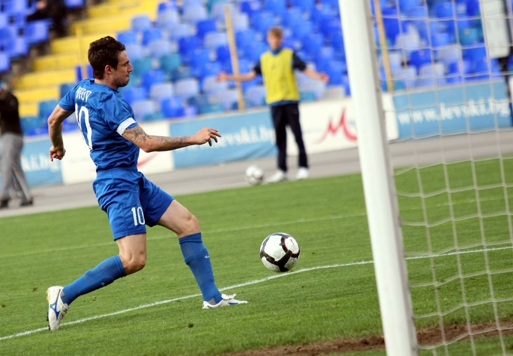 Така се стигна до 40-ата минута, когато Дарко Тасевски изведе майсторски Йовов сам срещу Емил Петров. Капитанът преодоля вратаря технично и прати топката в мрежата на гостите.