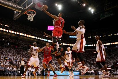 Крис Бош отноwo поведе своя тим с точна стрелба, 9:30 минути преди края за 74:68. Маями продължи да поддържа разликата в следващите минути, като играчите на тима се опитваха да неутрализрат убийствените пробиви на лидера на Чикаго Дерик Роуз. Независимо от това гардът и Карлос Буузър успяваха да държат гостите в мача. Крилото, който се представи много слабо в защита, бе точен на два пъти от линията на наказателния удар за 74:78. Хийт обаче отново поведоха с 6 за 80:74, а след това благодарение на много силна игра на Леброн Джеймс и Дуейн Уейд в двете фази дръпнаха с цели 10 точки за 84:74. Последва страхотно изпълнение от страна на Леброн. Крилото отне топката в защита и след това прекоси целия терен, за да реализира на пробив през Карл Корвър. Гардът на Чикаго фаулира играча на "Горещите", след което Леброн бе точен от линията на наказателния удар – 87:74. Кошове на Тадж Гибсън и Луол Денг, 2:53 преди края, свалиха дефицита на 9 точки за 80:89, след което наставникът на Маями Хийт Ерик Сполстра взе таймаут. След него отново Чикаго направи добра защита и Гибсън завърши последвалата атака за 82:89. Леброн обаче пое отговорност с точен изстрел за 91:82, преди отново Гибсън да реализира. Оставаха по-малко от две минути, когато Юдонис Хаслъм наниза важна стрелба отляво за 93:84. Това до голяма степен се оказа решаващо, след като в последните 70 секунди тимът от Южна Флорида съумя да запази своето предимство в резултата и така да спечели с крайното 96:85.