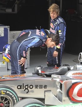 След края на квалификацията в Китай тази сутрин, фотографите в Шанхай хванаха доста любопитен момент. Пилотът на Ред Бул Марк Уебър внимателно разгледа кокпита на Макларън и най-вероятно шпионираше как точно работи системата "F-duct" на британците. Смята се, че Хамилтън и Бътън могат да контролират въздушния поток към задното крило с своите колена чрез специален механизъм. Повечето специалисти смятат, че пилотите на Макларън могат да отварят и затварят на правите участъци отвор, който е част от системата "F-duct".