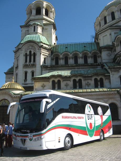Преди заминаването на момичетата луксозният автобус MAN бе официално осветен пред храм-паметника ”Александър Невски”. На освещаването присъстваха председателят на ДАМС Весела Лечева, президентът на волейболната ни федерация инж. Данчо Лазаров, както и почти всички от управата на родната ни централа. Отец Андонов отслужи тържествен водосвет и пожела на всички състезатели и волейболни ръководители, които ще се радват на удобствата на новото возило, на добър път. Данчо Лазаров и Весела Лечева също отправиха приветствия към присъстващите.