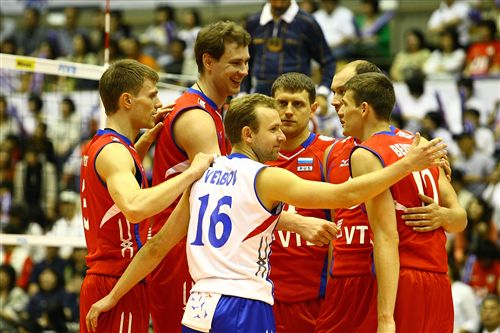 РУСИЯ: Владимир Мелник 4, Семьон Полтавский 13, Алексай Казаков 11, Сергей Гранкин, Юрий Бережко 14, Александър Волков 9 – Алексей Вербов-либеро (Евгений Сивожелез 8, Алексей Черемисин 8, Олег Самсоничев, Антон Асташенков 4)