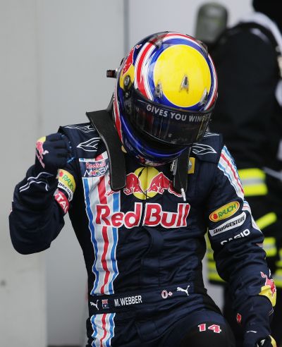 Пилотът на Ред Бул Марк Уебър победи в последните секунди Рубенс Барикело (БраунGP) в квалификацията на пистата "Нюрбургринг" и спечели пол-позишън преди неделното Гран при на Германия, 9-ти кръг от световния шампионат във Формула 1. Австралиецът печели за първи път в кариерата си челната позиция на старта. Трети в драматичната дъждовна квалификация, остана лидерът в шампионата Дженсън Бътън с БраунGP. Четвърти ще потегли местната звезда Себастиян Фетел (Ред Бул), който се провали в опитите си за първото място. След силно представяне, световният шампион Люис Хамилтън с Макларън-Мерцедес ще потегли 5-ти, пред 6.Хейки Ковалайнен (Макларън-Мерцедес), 7.Адриан Сутил (Форс Индия), 8.Фелипе Маса (Ферари), 9.Кими Райконен (Ферари), 10.Нелсън Пикет (Рено).