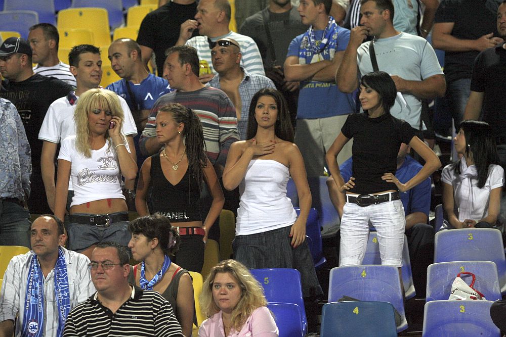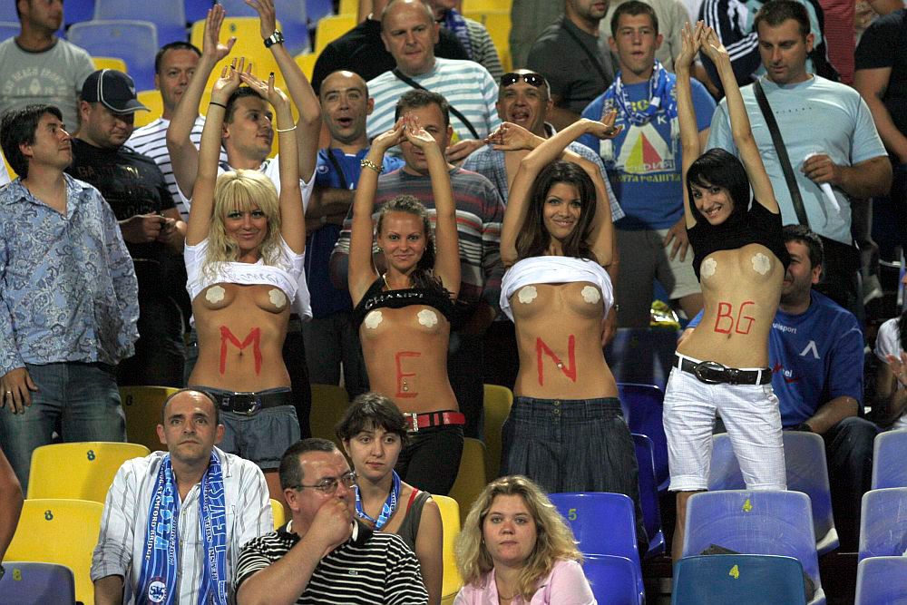 Красавици си свалиха дрехите по време на мача от Шампионската лига Левски – Дебрецен 1:2, който се игра снощи на стадион ”Георги Аспарухов” в София.