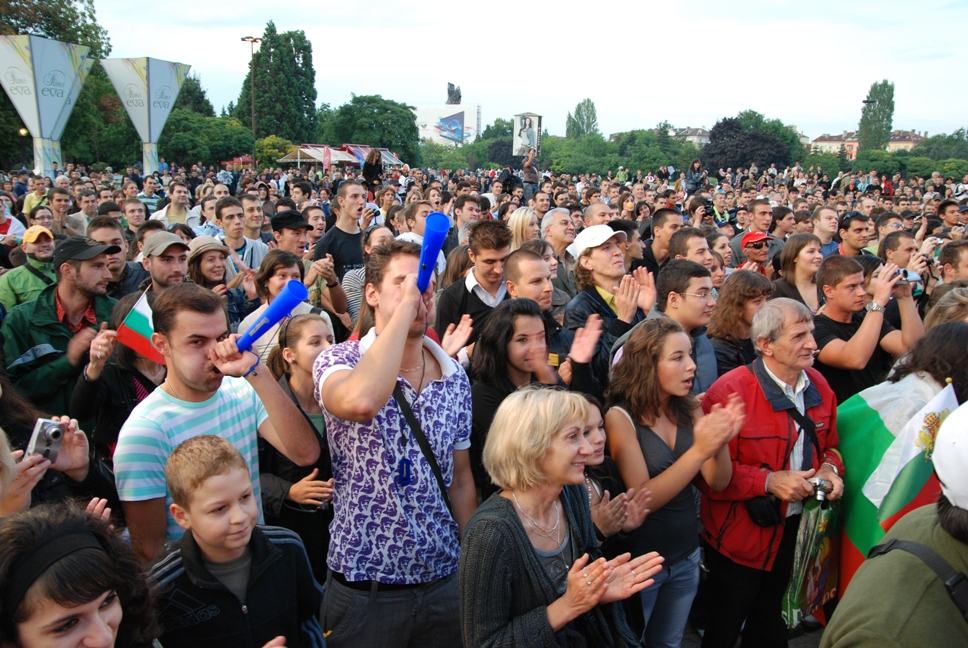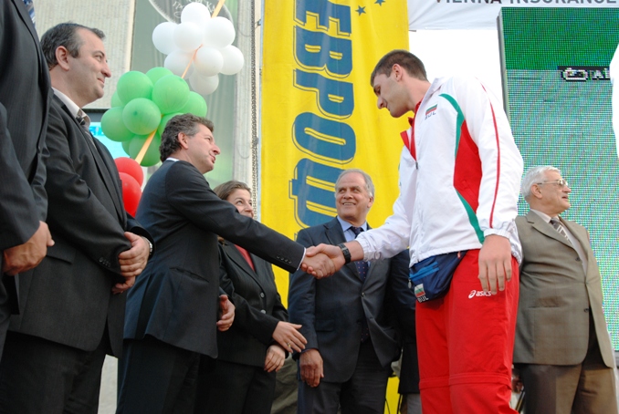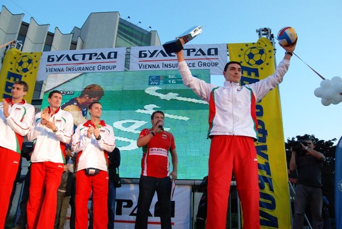 Независимо от дъждовното време, хиляди почитатели видяха на живо Матей Казийски и компания. Те получиха фенски подаръци от „Еврофутбол” - тромби, кречетала, пляскащи ръчички и свирки, с което атмосферата стана почти като на истински волейболен мач. Всеки състезател хвърли в публиката по една топка с подписите на бронзовите медалисти. Кулминацията на церемонията бе изпълнението на националния химн и мощната заря, озарила небето над София. Водещ бе Ники Кънчев, а мажоретките на „Еврофутбол” шашнаха публиката със специално изпълнение на танц върху музиката на „Боят настана”. Концерт в чест на националите изнесоха Deеp Zone Project.