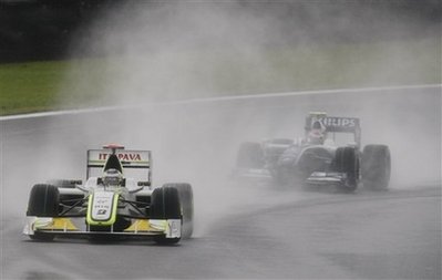 Местният герой Рубенс Барикело (БраунGP) спечели супер драматичен пол-позишън в квалификацията за Гран при на Бразилия, продължила почти 3 часа. Големият му съперник за титлата - съотборникът му Дженсън Бътън ще стартира едва 14-ти, а другият претендент Фетел е дори по-назад - 16-ти. Така интригата за новия световен шампион във Формула 1 се запази! Квалификацията се превърна в истински трилър и продължи почти 3 часа, заради лошото време и силния дъжд, което принудиите съдиите на ФИА на няколко пъти да спират сесията, заради инциденти и лоши условия на наводнената писта.