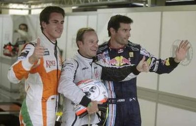 Втори днес след невероятни обрати остана Марк Уебър (Ред Бул), а трети ще стартира Адриан Сутил с Форс Индия. Четвърти на решетката в неделя ще застане Ярно Трули (Тойота). Топ 10 на старта допълниха още: 5.Кими Райконен (Ферари), 6.Себастиян Буеми (Торо Росо), 7.Нико Розберг (Уилямс-Тойота), 8.Роберт Кубица (БМВ-Заубер), 9.Казуки Накаджима (Уилямс-Тойота) и 10.Фернандо Алонсо (Рено).
