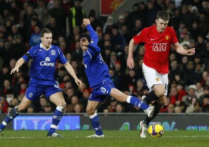 Шампионът на Англия Манчестър Юнайтед продължи победния си ход и с минимален успех с 1:0 над Евертън отново увеличи преднината си на върха на класирането на 5 точки пред преследвачите си Челси и Ливърпул. Двубоят на "Олд Трафорд" беше 12-и пореден без "червените дяволи" да допуснат гол. Единственото попадение за тях вкара Кристияно Роналдо от дузпа точно преди почивката. Нарушението спечели Майкъл Карик, който беше най-добрият футболист на терена. Капитанът на българския национален отбор Димитър Бербатов също се представи на ниво, но за разлика от предишните мачове нямаше много положения и не успя да се разпише.