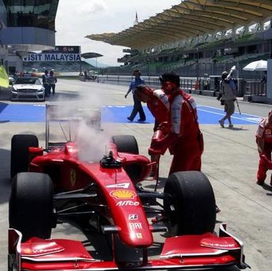 Минути преди края на тренировката колата на Кими - Ферари F60 почти се запали, а от кокпита на финландеца започна да излиза много пушек. Димът идваше от пода на болида, не от двигателя и Райконен бе обвит в гъст дим. Влизайки в боска, той дори трябваше да разкопчае коланите си в движение, за да се осовбоди по-бързо от кокпита. Кими успя да стигне до гаража на Ферари и набързо изкочи от врящата кола. Температурата в кокпита му се покачи значително и само може да си представим какво му е било на "Айсмен". Най-вероятно проблемът е свързан с прегряване на батериите на системата за кинетична енергия КЕРС, която се намира точно под седалката на Кими. Механиците на Ферари веднага сложиха гумени ръкавици, заради високото напрежение, както и маски, заради острата миризма и започнаха да проверяват F60.