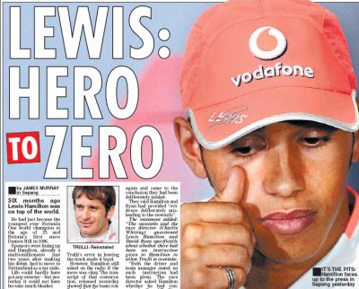 Само за една нощ мнението във Великобритания за световния шампион Люис Хамилтън с Макларън-Мерцедес направи рязък завой. До вчера Люис бе супер звезда и любимец на вестниците в родината си, но днес вече е наричан от големите издания и спортни списания ''лъжец''. Големият вестник ''Дейли Стар'' осъмна днес със заглавие ''Лъжльото Люис", а ''Сън'' с показателното ''Ти си лъжец, Люис''.