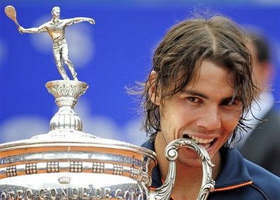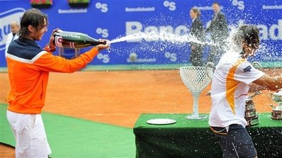 Лидерът в световната ранглиста Рафаел Надал спечели петата си поредна титла на турнира в Барселона. На финала 22-годишният испанец надигра сънародника си Давид Ферер с 6:2, 7:5. Миналия сезон отново Ферер бе противник на Надал в прекия спор за трофея, като тогава левичарят от Майорка даде един сет на съперника си. Миналата седмица Надал спечели рекордна пета поредна титла на турнира от сериите "Мастърс" в Монте Карло и има само 3 загуби в последните си 133 мача на червени кортове. Това бе 35-а титла в кариерата на Надал, който вече има 24 спечелени от общо 25 финала в турнири на клей.