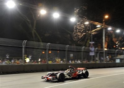 Петъчните тренировки остават в историята на Формула 1 като първите проведени на осветление. Атмосферата на пистата е страхотна, а за сега прогнозите за дъжд не се оправдават. Болидите изглеждат изключително ефектно под мощните прожектори, а светлината се отразява по тях великолепно.