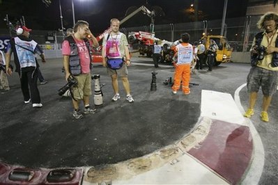 Вниманието на пилотите по-рано тази седмица бе насочено към опасните бордюри. които обграждат пистата "Марина Бей" в Сингапур, но след три часа тренировки в петък излезе и друг проблем - неравности и бабуни по тарсето. Главоболието на Нико Розберг, посинените крака на Адриан Сутил и разбитият болид на Джанкарло Фисикела са само част от последствията от условията на трасето.