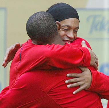 Камерунецът бе питан и за своя приятел и най-коментиран човек на „Камп Ноу" последните месеци - Роналдиньо. „Роналдиньо е много спокоен. Смятам, че е човек с характер. Всички имаме трудности, но е важно да се раздаваме на терена. Хората искат много, защото знаят какво може да направи. Никой в света няма класата, която има Роналдиньо", заяви Ето'о.