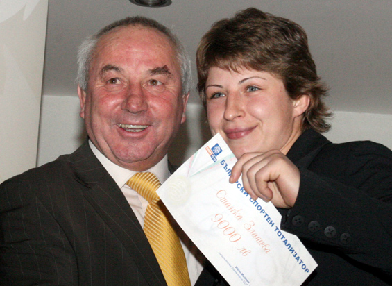 Българският спортен тотализатор спази дългогодишната си традиция и отличи с парични награди на обща стойност 150 хиляди лева европейските и световните шампиони на страната ни, всички с квоти за летните Олимпийски и Параолимпийски игри в Пекин догодина. Това стана на изискана церемония в античната атмосфера на единствения в София резиденс хотел "Арена Ди Сердика" от веригата FPI Hotels&Resorts. Премиите бяха връчени от изпълнителният директор на БСТ Иван Иванов, председателят на УС на БСТ Георги Мърков и от председателят на ДАМС Весела Лечева. Световните шампиони по борба Явор Янакиев, по вдигане на тежести Иван Стоицов и по канадска борба Вероника Бонкова получиха по 6000 лева, световната и европейска шампионка по борба Станка Златева взе 9000 лева, а двукратните световни шампиони по фигурно пързаляне Албена Денкова и Максим Стависки получиха общо 12 000 лева. Европейските първенци - Евгения Раданова, Таню Киряков, Румяна Нейкова и Николай Гергов взеха по 3000 лева.