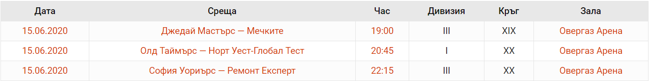 Сезонът в НАЛБ се подновява днес с мачовете от 20-ия кръг на лигата, а самата вечер започва с отложен двубой от 19-ото завъртане. От 19:00 един срещу друг ще застанат Джедай Мастърс и Мечките. Двата отбора са част от Дивизия III на първенството. Веднага след него започва мач от Дивизия I, който ще противопостави Олд Таймърс и Норт-Уест-Глобал Тест. Вечерта завършва с още една среща от Дивизия III, като този път на паркета в "Овергаз арена" ще излязат София Уориърс и Ремонт Експерт.