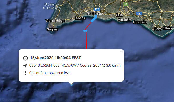 Потеглихме от Портимао в спокойни води с приповдигнато настроение. След 4ч, ветрове от Запад започнаха да ни връщат обратно към брега. За да избегнем да бъдем разбити на скалите пуснахме парашутната котва и починахме/спахме няколко часа. Изваждането на котвата от водата отне около час, но изглеждаше безкрайно и изискваше много сила. След този опит веднага сложихме второ въже за изтегляне на върха на парашута”, написаха баща и син в профила на своя гребен проект Neverest Ocean Row.