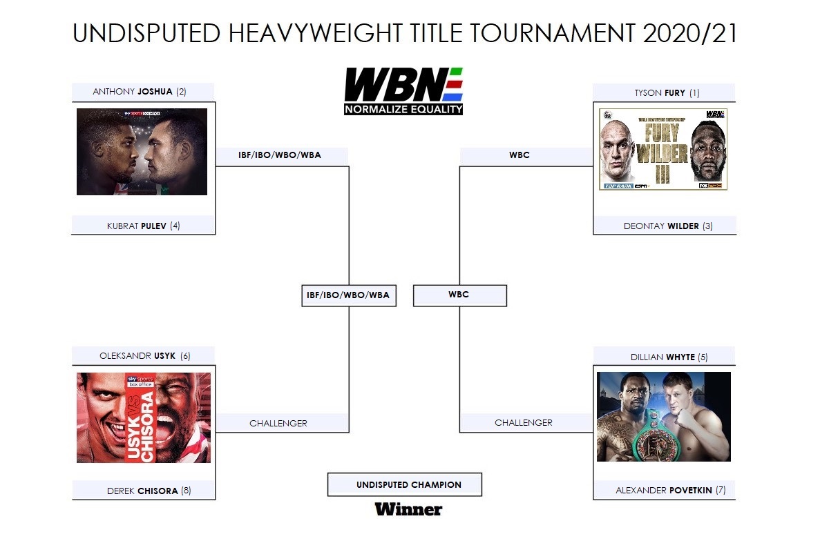 Популярният сайт World Boxing News съзря организирането на елиминационен турнир при най-тежките в бокса. В момента двамата шампиони Антъни Джошуа и Тайсън Фюри имат договори за битки, а съперниците на върха са идеално подредени за елиминатор.