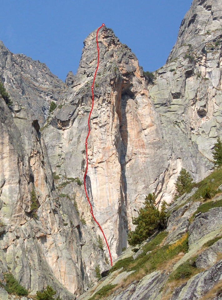 Турът се намира на Крайна Дяволска игла, състои се от 5 въжета (по около 35 метра), първите 3 от които - в силен надвес. Максималната категория за свободно преминаване е 7b/7b+.