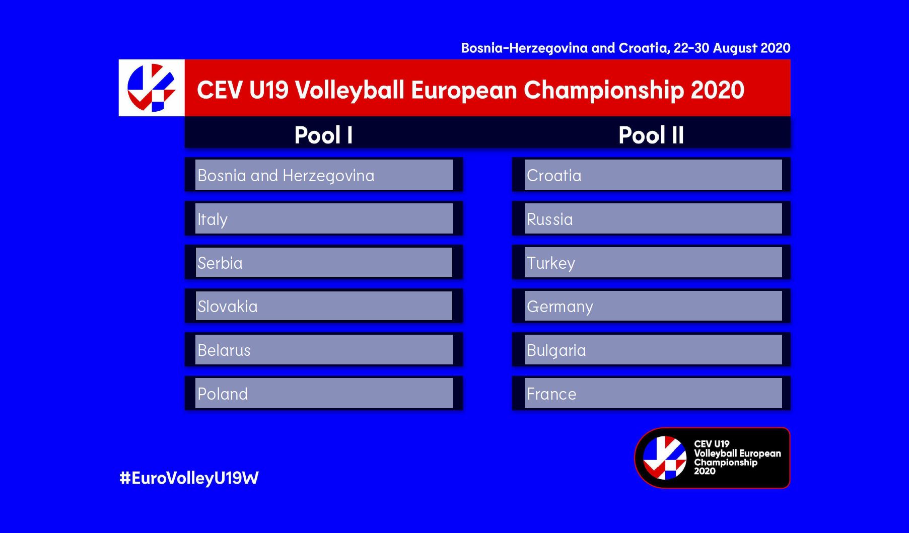 България попадна в група с Хърватия Русия, Турция, Германия и Франция за Европейското първенство по волейбол за девойки под 19 години. Шампионатът ще е между 22 и 30 август, като 12-те отбора са разделени на две групи.